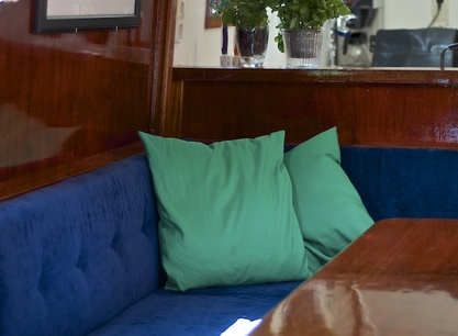 The ship has a cosy lounge where you can eat, relax, or enjoy a drink together. The open kitchen is located within the lounge and is fully equipped to prepare delicious meals. The galley includes a 6-burner gas stove, a large oven, a spacious fridge with a large freezer, a beer tap system, and a coffee machine (with filter).