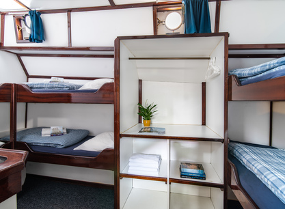 The interior below deck exudes a warm and authentic ship's atmosphere. Especially the separate seating area around the bar is a comfortable spot in the evening, where the experiences of the day make for great conversation, accompanied by a tasty snack and drink.
